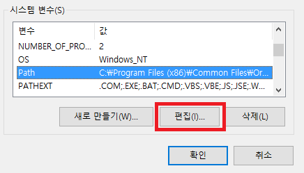 다음 JAVA의 bin폴더를 path에 추가해준다. 방법은 아래와 같다.